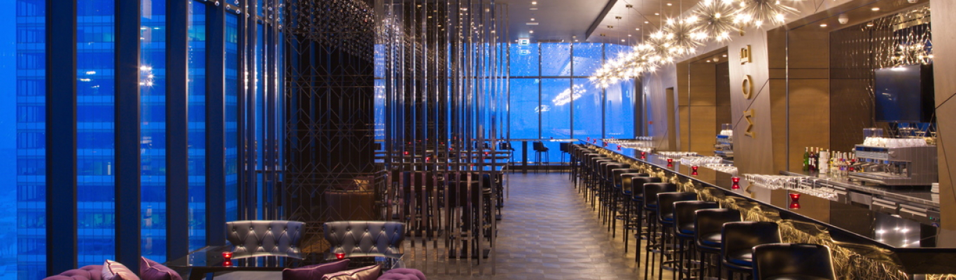 An ultramodern venue awaits city guests on the 21st floor of the DoubleTree by Hilton hotel in Minsk. Guests are welcome here every day except Sundays from 19:00 to 01:00 at night. The owners of the venue present it as a sky-bar, and this is quite fair, considering what a wonderful panoramic view of the city opens from the windows of this venue. Here, literally and figuratively, you can feel yourself in heaven. A similar atmosphere is created by one of the longest bar counters in Minsk, a hand-made honeycomb wall and a photo area with a bathtub from Moet & Chandon, comfortable wide furniture covered with leather, midnight quartz countertops. The windows of the bar offer a picturesque view of the evening city - the embankment of the Svisloch River, the Island of Tears and Trinity Suburb. You cannot find a better place if you want to admire the fireworks and lights of Minsk at night.