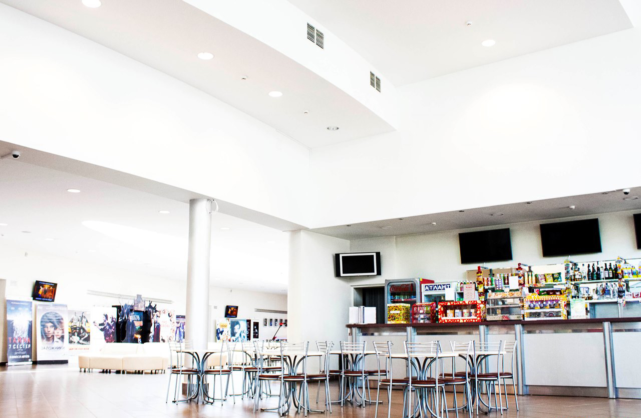 The cinema has five comfortable halls of different sizes, equipped with the latest technical equipment.