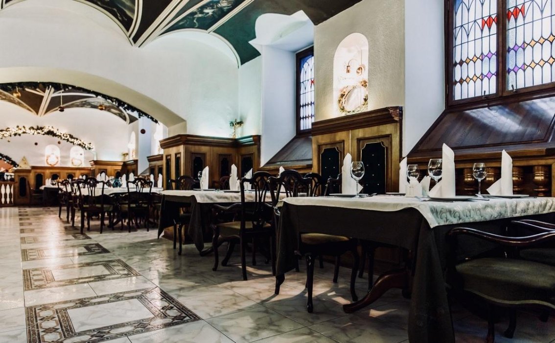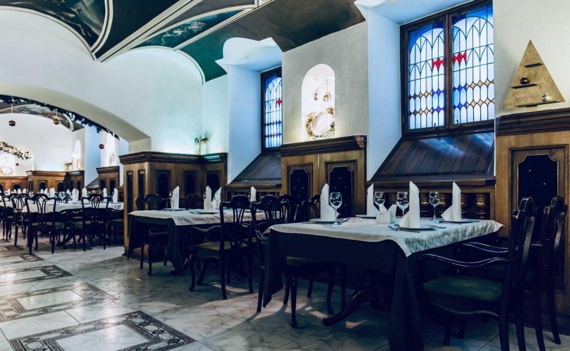 The restaurant is located in the center of Minsk at the address: st. Sovetskaya, 17. Therefore, any visitor can quickly find a restaurant, as well as enjoy beautiful views of the capital of Belarus during a feast. Excellent classic European cuisine, as well as Belarusian cuisine in a new format, is served in a fantastically comfortable, colorful and hospitable venue. Every Thursday, Friday and Saturday, classical and contemporary compositions are performed by real singers with beautiful voices. There are 3 mini-halls and a fireplace room at the disposal of visitors. The interior of the latter amazes with its decoration - on the walls there are illustrations of the secret court assembly of the Radziwills princes. Copies of illustrations were made by artists from the originals of paintings, which are in the National Museum of the Republic of Belarus. Such decoration will be suitable for lovers of real art, history and art galleries. You can observe historical moments in the form of frescoes on the walls and ceiling of the establishment, ancient arched windows will complement the atmosphere of immersion in the Middle Ages, and upon entering you will be pleasantly surprised by a real knight in forged armor, who is also a peculiar feature of the establishment. The «Gostiny Dvor» restaurant is an opportunity to taste delicious dishes at the most pleasant prices and just relax in the center of the capital of Belarus.