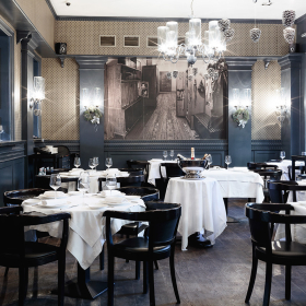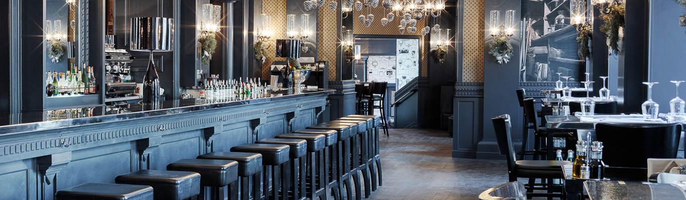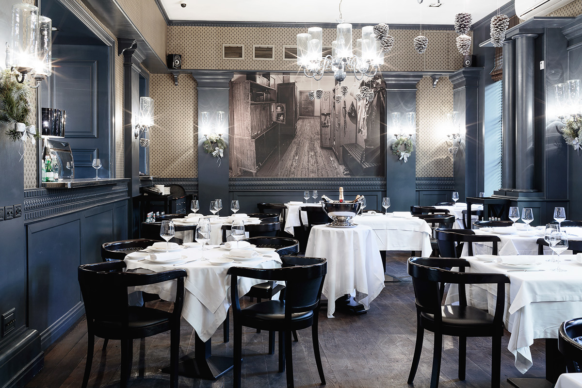 The interior of the Grand Cafe is made in a modern European style with a French accent. The design features a lot of wood, a calm palette of natural shades, an abundance of mirrors and classic elements. The highlight of the decor is a photo of communal apartments from the Soviet past, as well as panoramic windows through which a view of the bustling Lenin Street opens. The venue is functionally divided into several zones: a bistro area (smoking is allowed here), a restaurant area (non-smoking) and a banquet room for 12 people. During warmer months, visitors can also sit on the summer terrace.