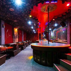 The club employs girls for every taste, all different: tanned and with aristocratic white skin, blondes and brunettes, petite and lush beauties. Guests are invited to become spectators of a beautiful show program. Also, dancers can go down to the guests and demonstrate a personal dance.
