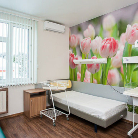 The medical facility uses the latest obstetric technologies such as partner and vertical births. At the request of a pregnant woman, a husband or mother may be present at the birth.