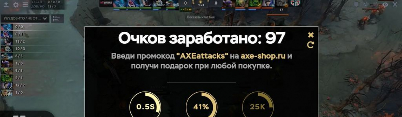 So Winstrike started looking for an alternative. We made a game based on a Piece of Dota,branding it for the company AXE. In the game it was necessary to catch creeps (representatives of the forces of Light and Darkness). The system analyzed the reaction rate and hit accuracy. At the end, the player was given a promo code, which could be used to get a gift when shopping in the AXE store. The conversion was high.