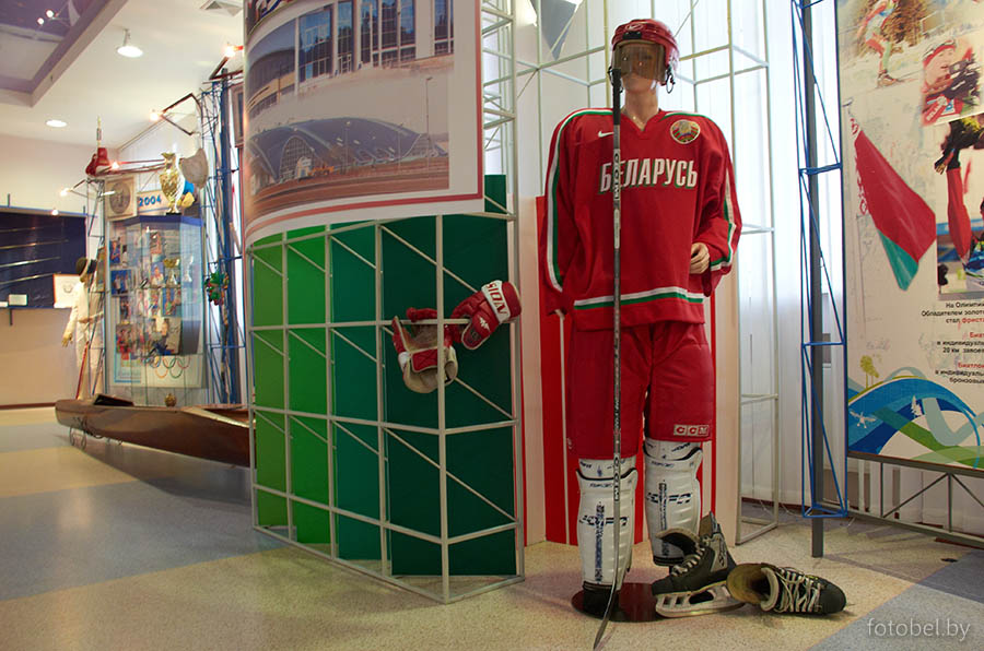 Площадь экспозиции музея составляет 456 квадратных метров. Выставка включает в себя два экскурсионных зала, демонстрационный зал, картинная галерея и конференц-зал. В музее также есть зал славы, где собраны портреты выдающихся спортсменов Беларуси.