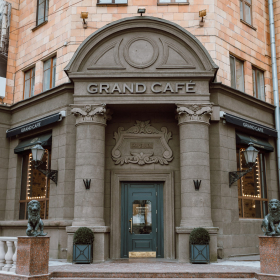 В меню Grand Сafe представлена европейская кухня — классика мировых кафе. Здесь подают такие известные блюда, как ризотто «Море и Горы», салат «Ницца» и безе Павлова. Меню обновляется согласно сезону. Акцент в алкогольной карте сделан на классические коктейли и большой выбор вин, от недорогих до престижных сортов. Кухня представлена европейская и авторская. Меню состоит из основных блюд, супов, гарниров, салатов, коктейлей. Средний чек заведения 70 рублей.