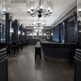 Интерьер Grand Сafe выполнен в современном европейском стиле с французским акцентом. В оформлении присутствует много дерева, спокойная палитра натуральных оттенков, обилие зеркал и элементы классики. Изюминка декора — фото коммунальных квартир из советского прошлого, а также панорамные окна, через которые открывается вид на оживленную улицу Ленина. Заведение функционально разделено на несколько зон: зона бистро (здесь можно курить), ресторанная зона (некурящая) и банкетная комната на 12 человек. В теплое время года посетители могут разместиться и на летней террасе.