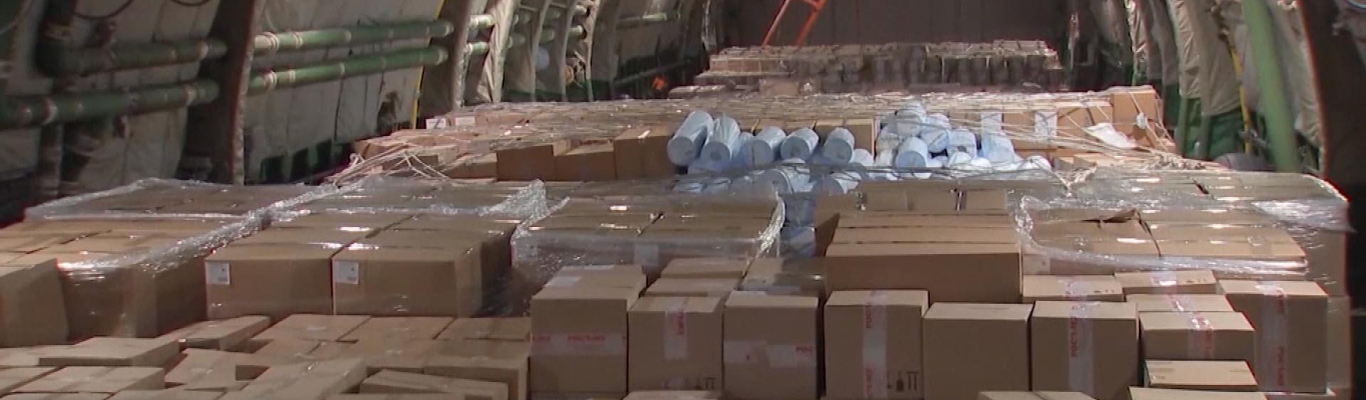 Среди груза есть продукты питания, палатки, одеяла и средства гигиены, медикаменты, одежда.