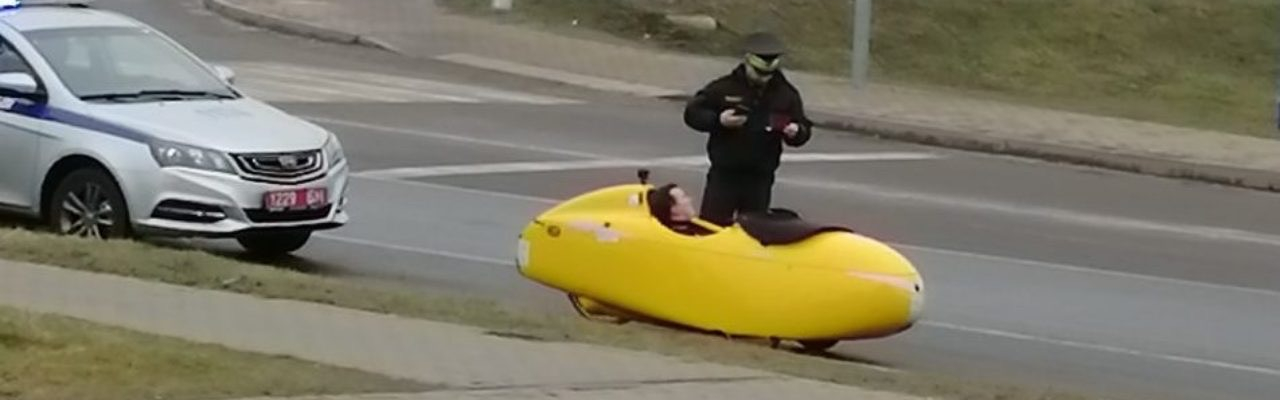 За рулем был немец Яша Бейттлер, путешествующий на веломобиле. Несколько дней назад он доехал до Беларуси. Судя по его Instagram, мужчина уже побывал в Бресте, Кобрине и Пинске, а сейчас отправился в Слуцк, сообщает onliner.by.
